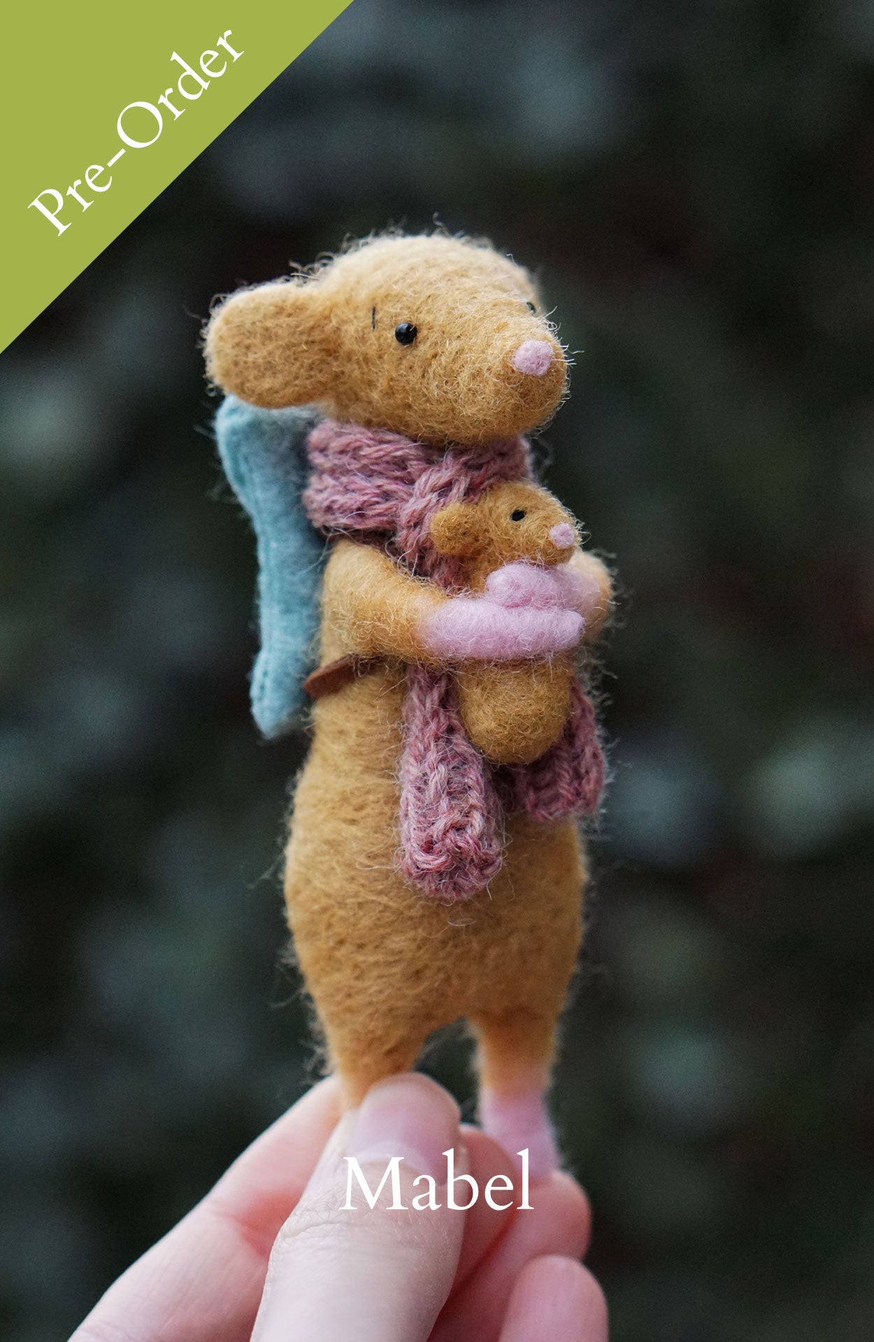 These little mice were made out of wool using the dry needle felting process. They stand at approximately 12.5cm tall from the bottom of their paws to the top of their heads.